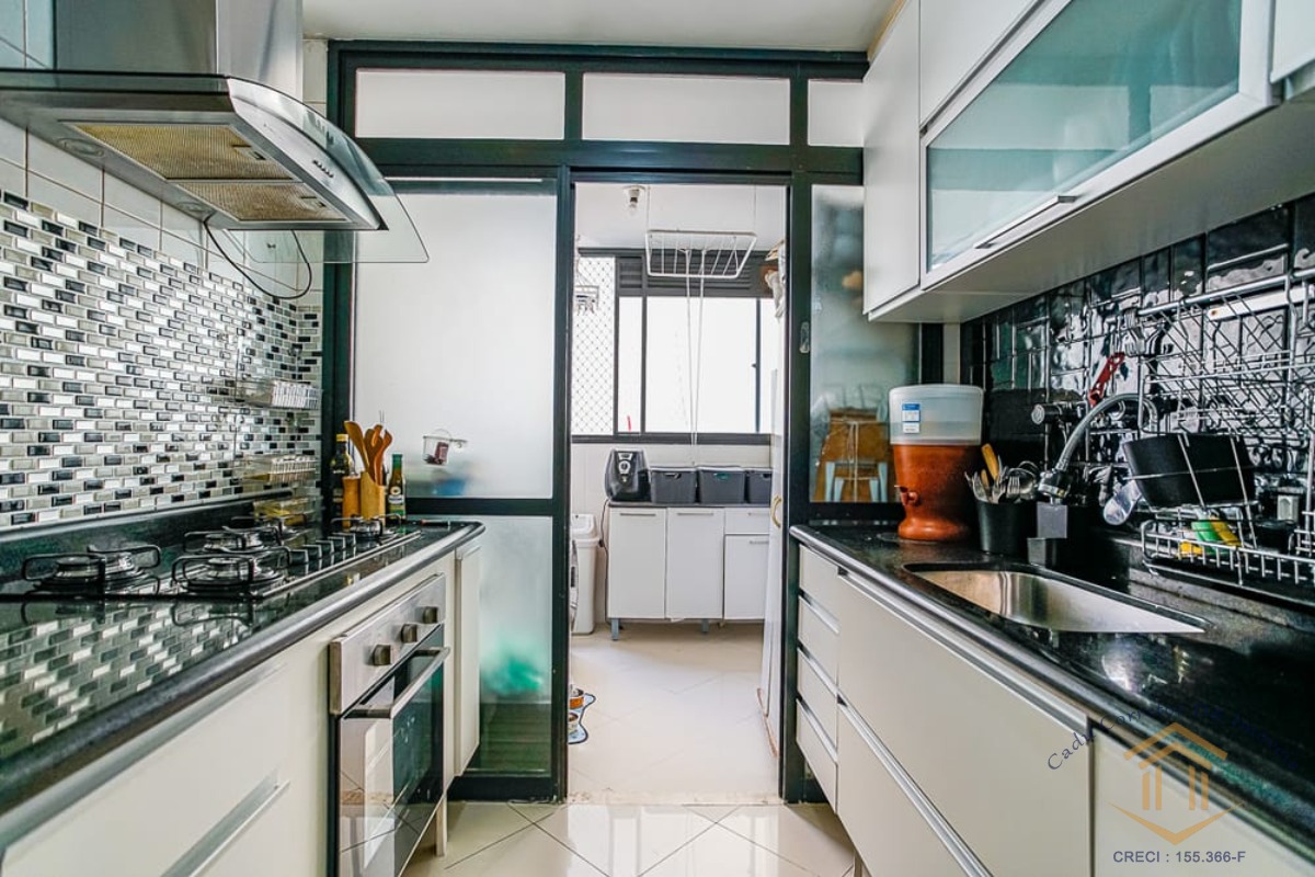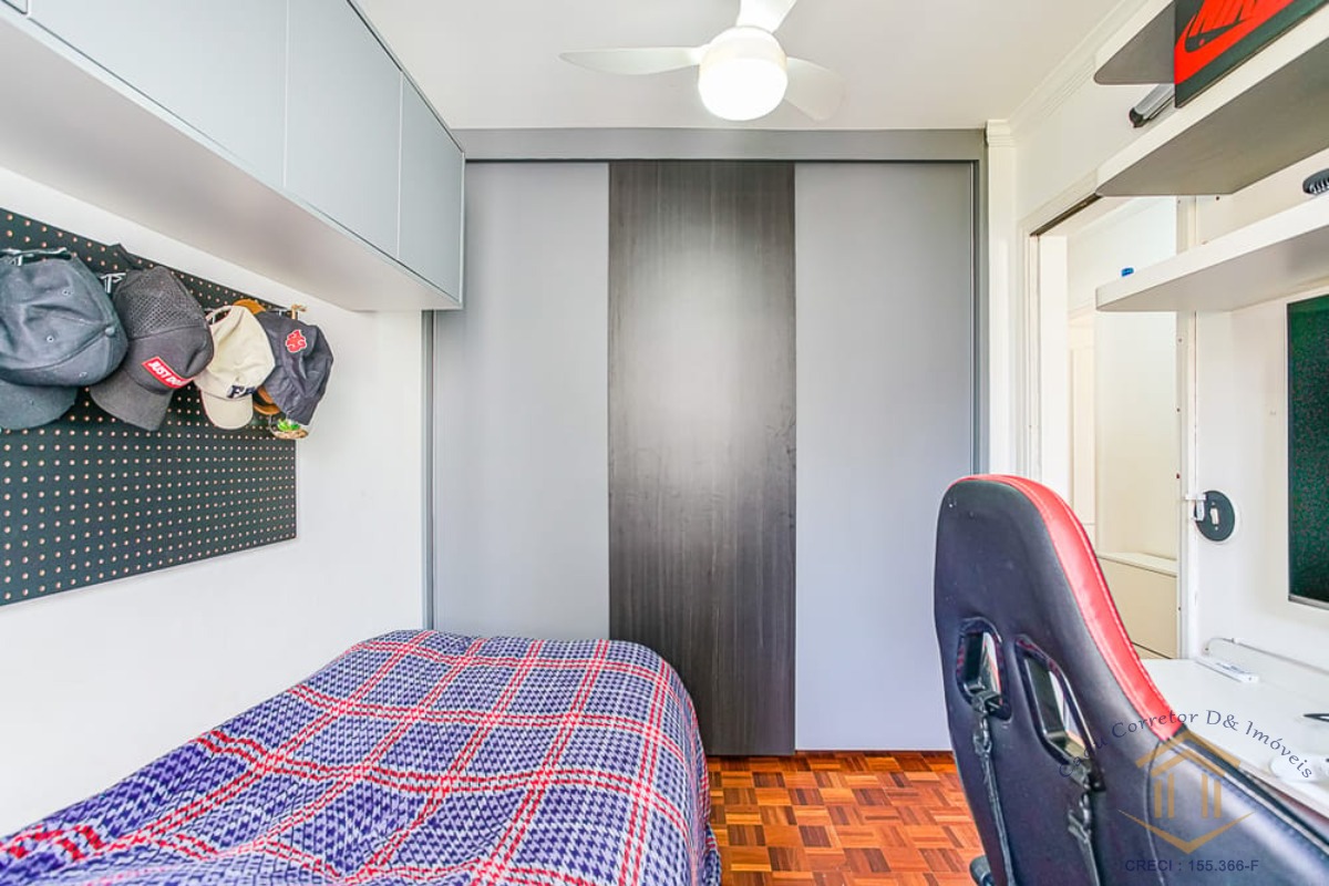 São 106 metros com 3 quartos sendo uma suíte, todos com armários, living espaçoso com dois ambientes e varanda, cozinha com armários e lavanderia e duas vagas de garagem.